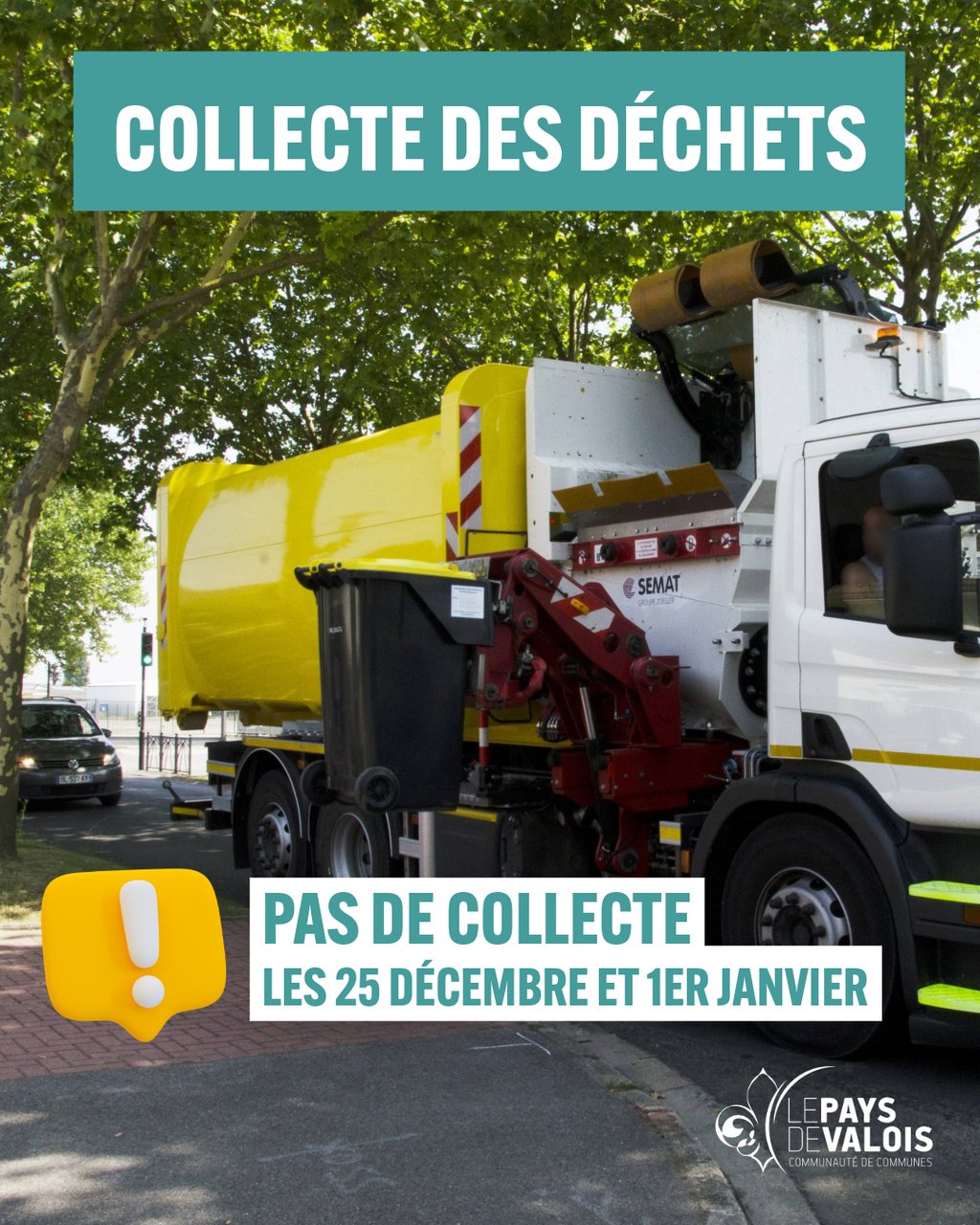 Il n'y aura pas de collecte les 25 décembre et 1er janvier