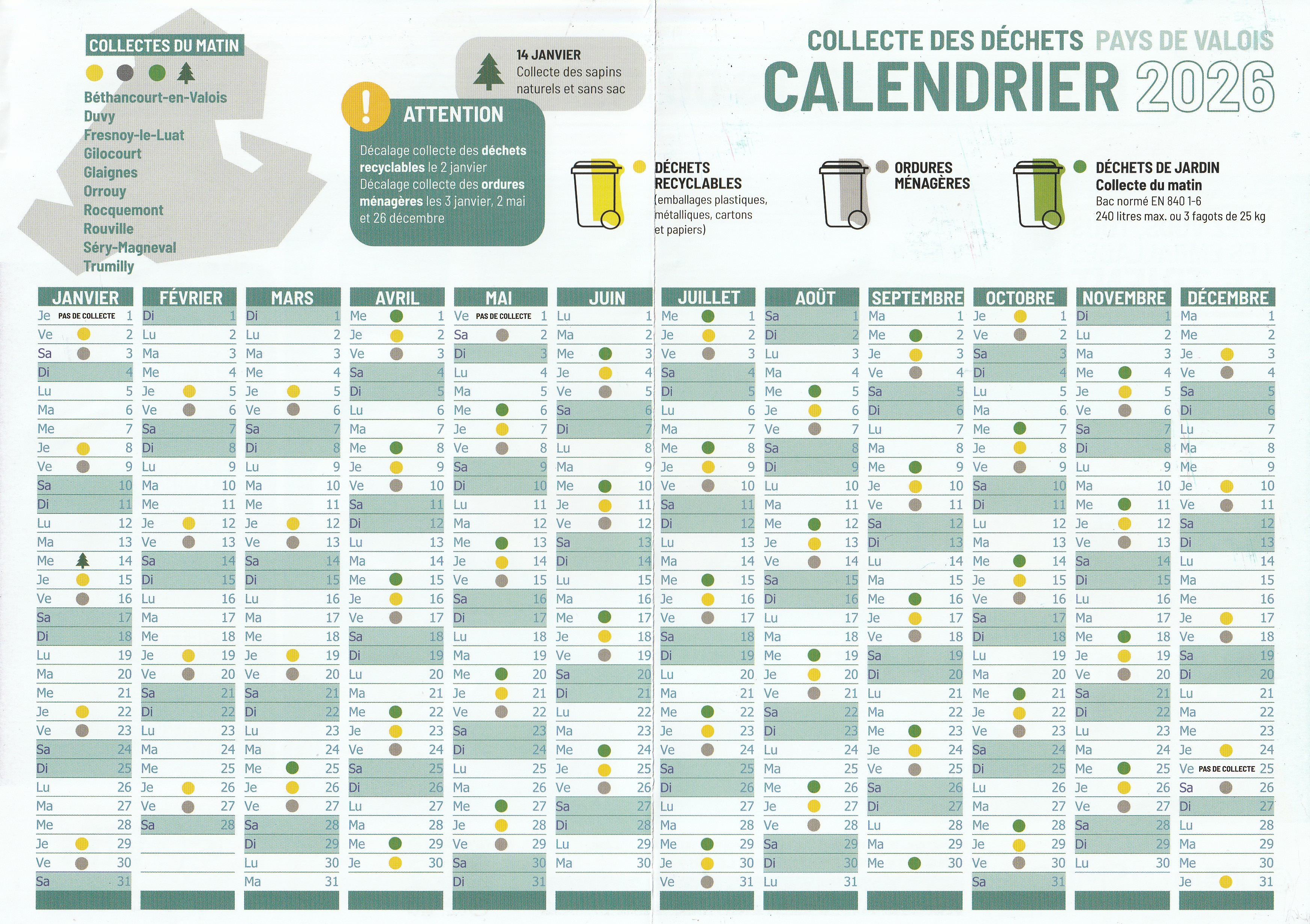 Voici le calendrier de collecte pour l'année 2026 : Calendrier 2026